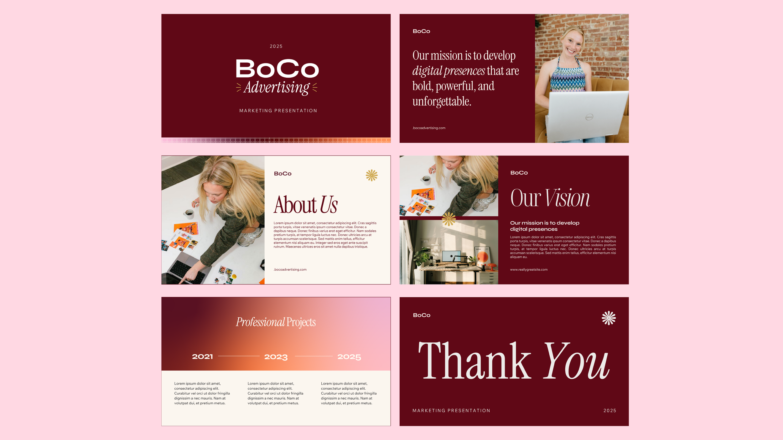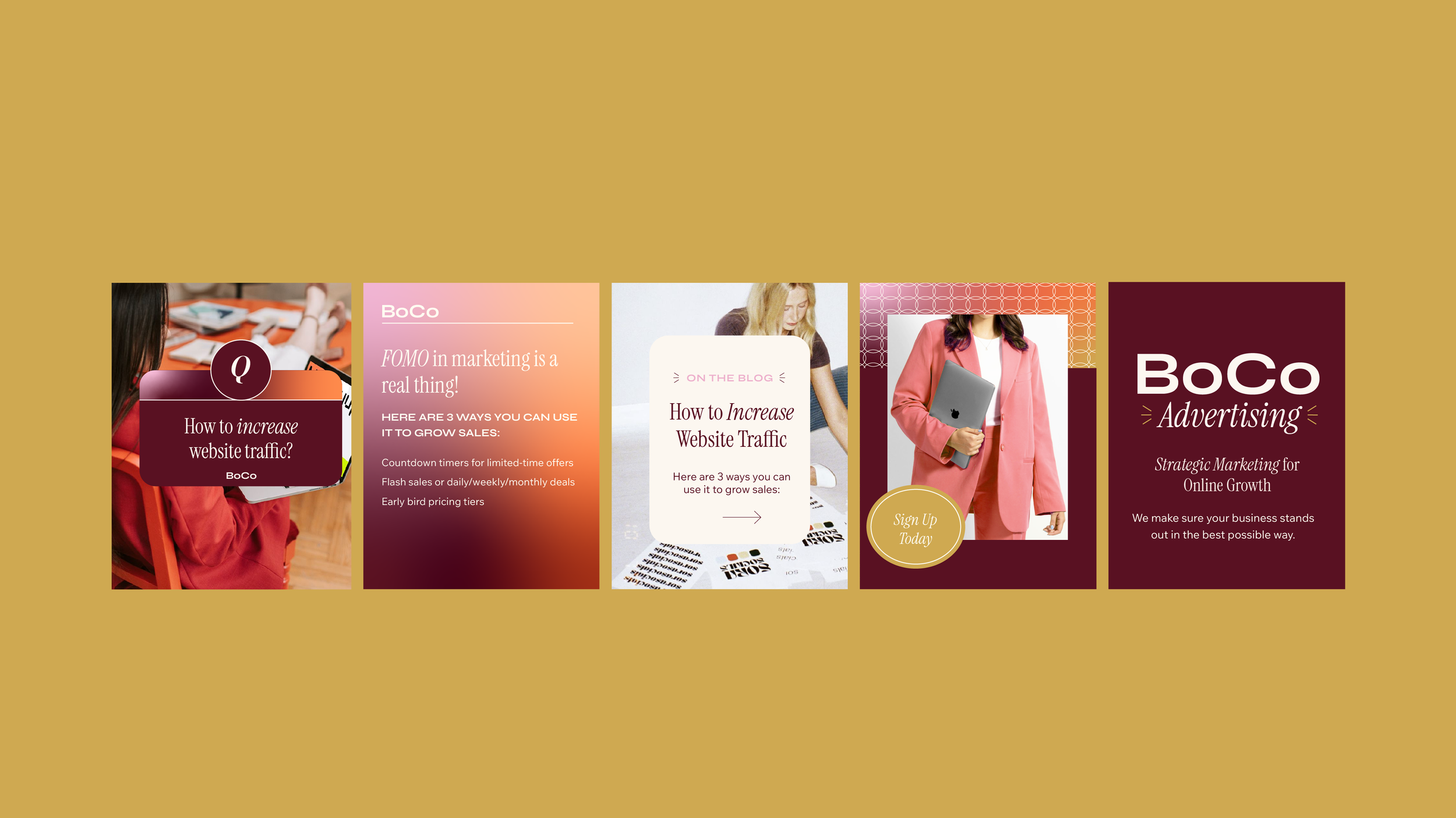 BoCo AdvertisingBoCo helps business owners simplify, streamline, and scale marketing. Offering website refreshes, google ads management, and fractional marketing. BoCo will spark your ideas. Liz created the logo, branding, print and digital assets.